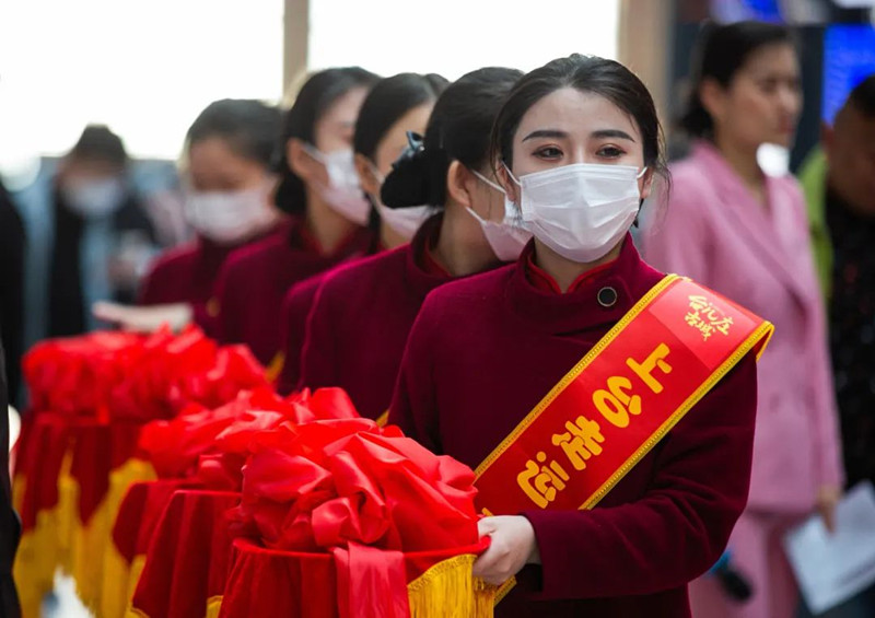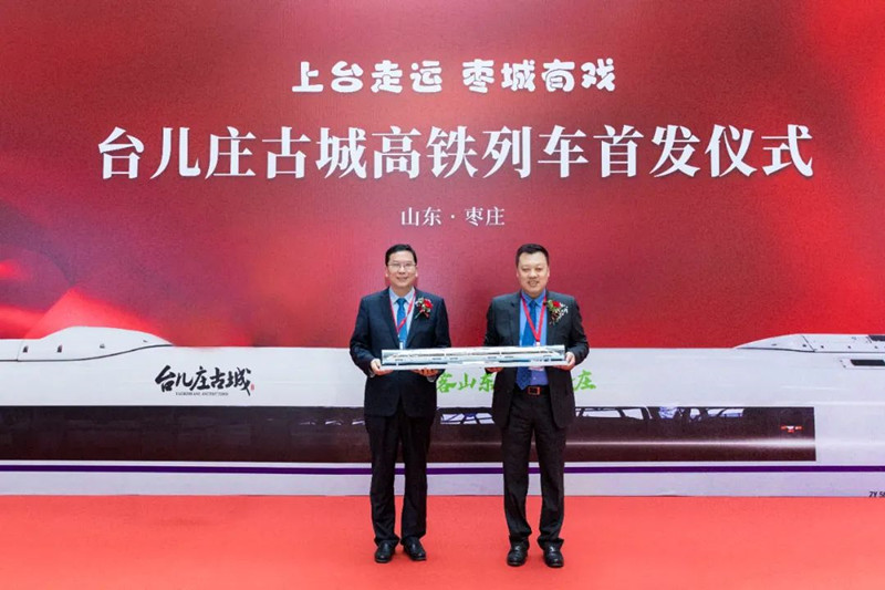 隨后,出席嘉賓共同為“臺兒莊古城”高鐵冠名專列首發(fā)啟程進行剪彩并互贈紀念品。
