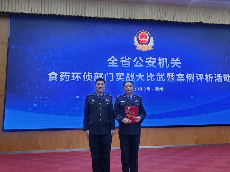 2月15日,山東省公安廳舉辦的2022年全省公安機關食藥環(huán)偵部門實戰(zhàn)大比武暨案例評析活動中,棗莊高新區(qū)公安分局張范派出所三級警長孫寶以分局破獲的“1.28銷售有毒有害食品案”作為精品案件,代表棗莊市公安局參加了此次食藥環(huán)領域案例比武活動,經(jīng)過激烈角逐,在全省22名參賽選手中脫穎而出,榮獲一等獎!